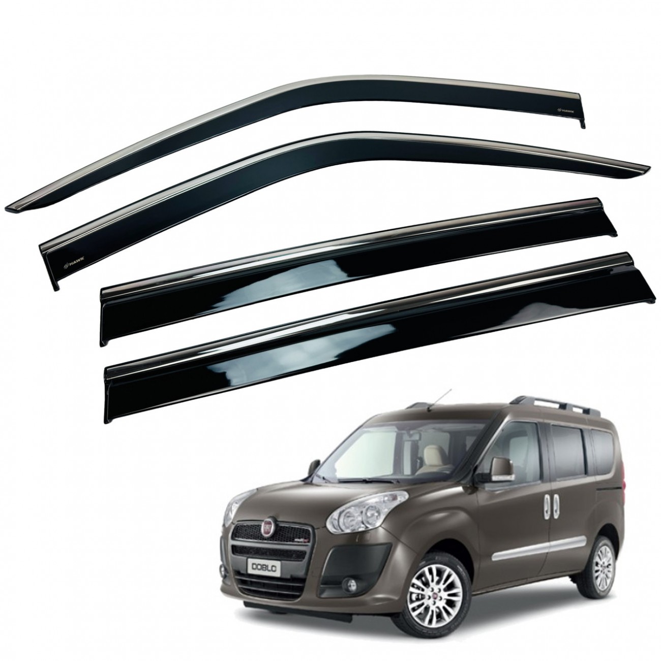 Дефлекторы окон (ветровики) для FIAT DOBLO II / OPEL COMBO 2010+ нерж. з хром полоскою (HAWK)