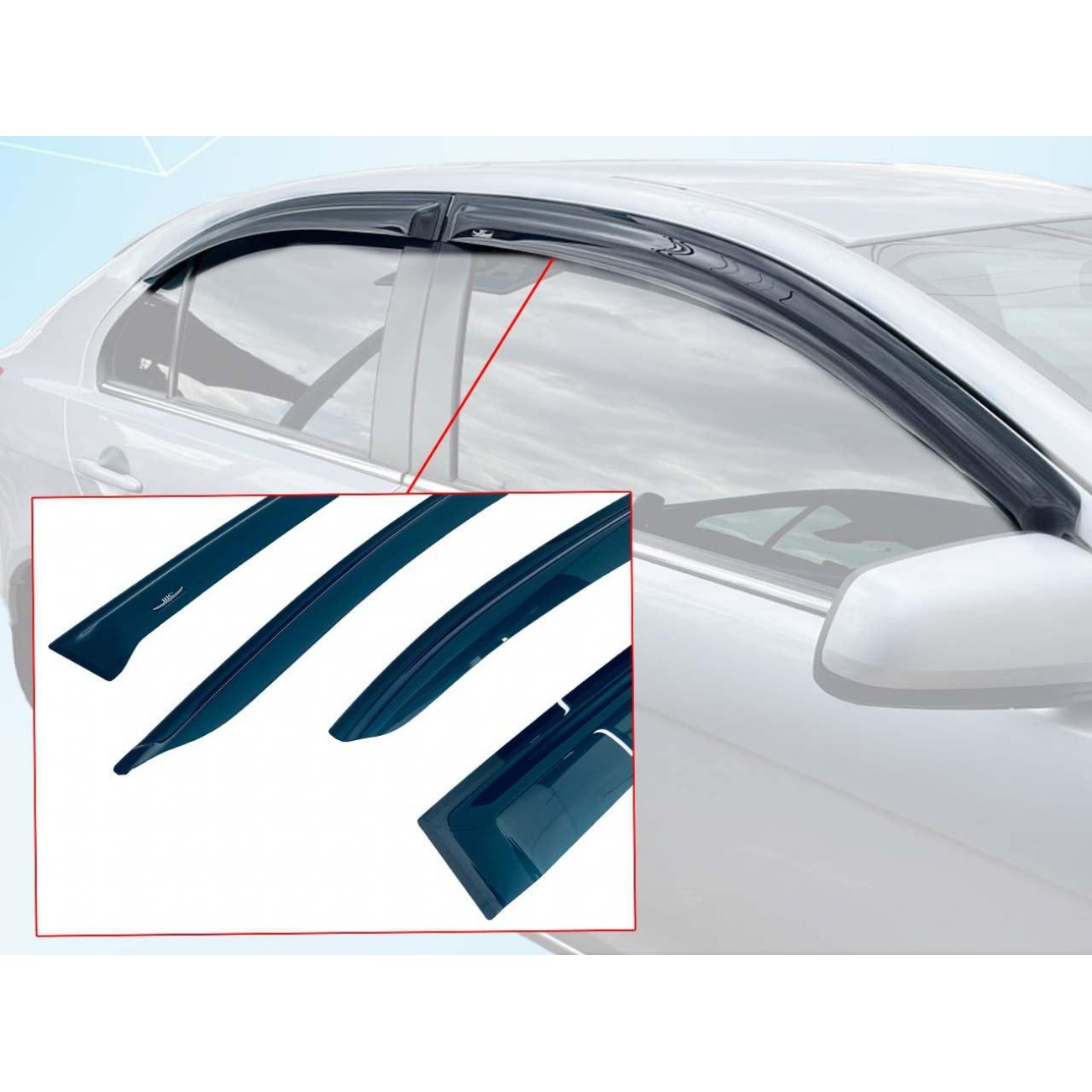 Изготовлены из качественного поликарбоната, который сочетает прочность, гибкость и долговечность. Идеально подходят под конкретную модель авто и легко устанавливаются без сверления.