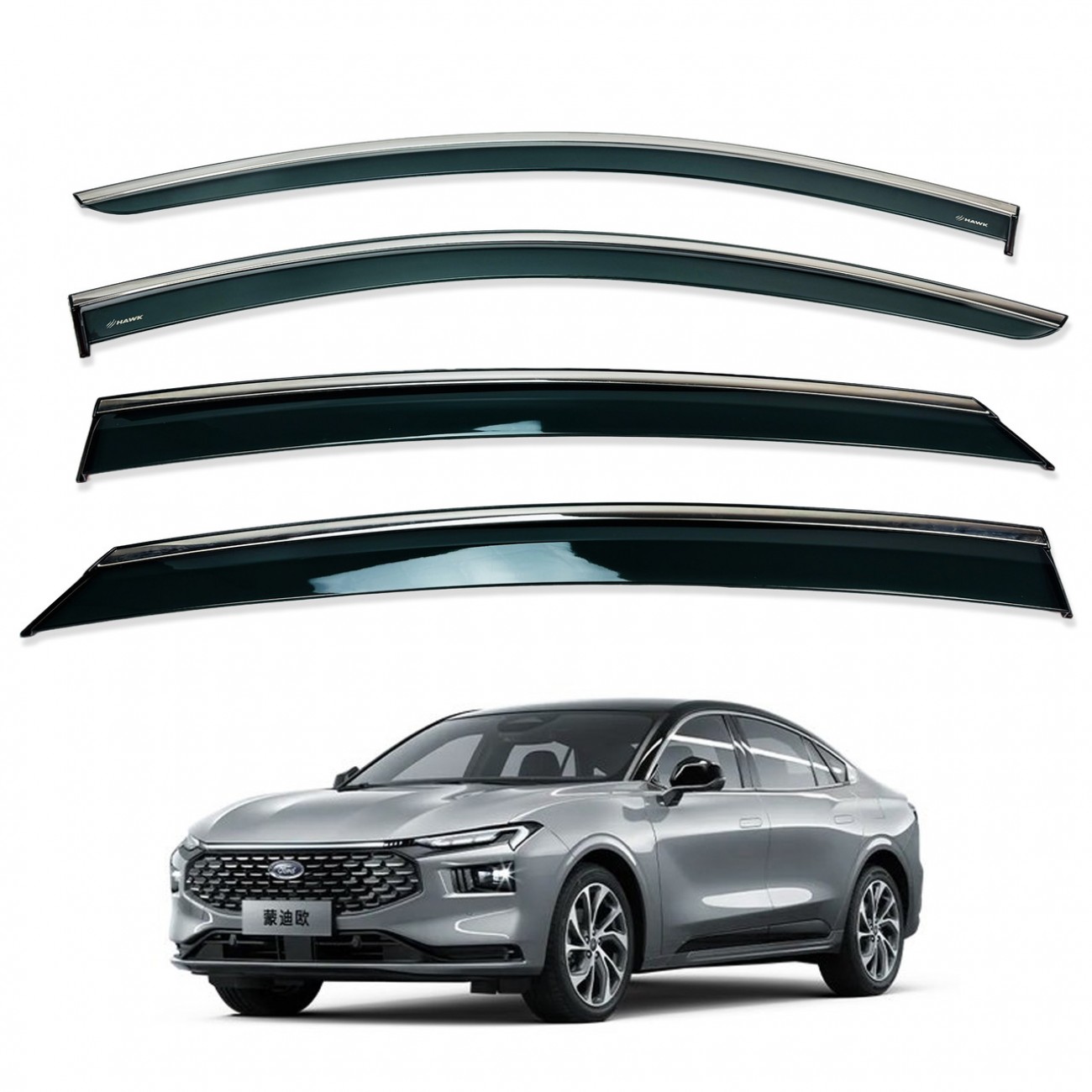 Дефлектори вікон (вітровики) для FORD MONDEO 2022+ нерж. з хром полоскою (HAWK)