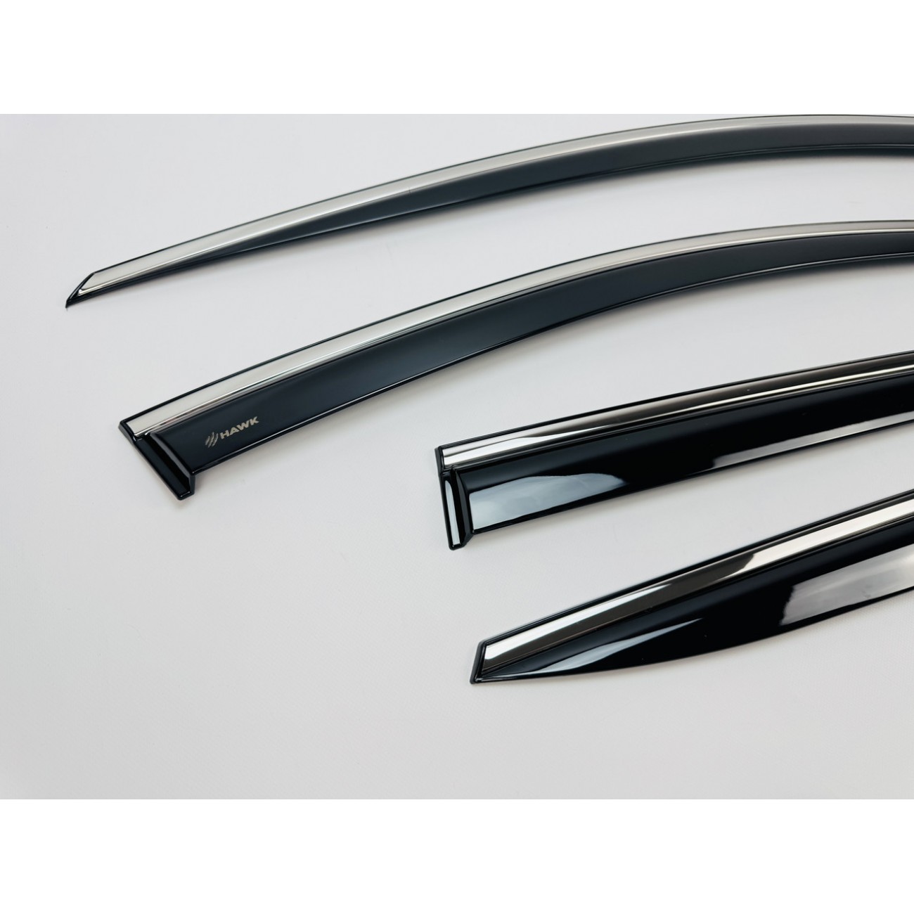 Дефлектори вікон HAWK — це ідеальне поєднання практичності та сучасного дизайну. Вони не лише захищають салон від дощу, снігу та вітру, а й додають автомобілю виразного преміального вигляду завдяки стильній хромованій вставці.