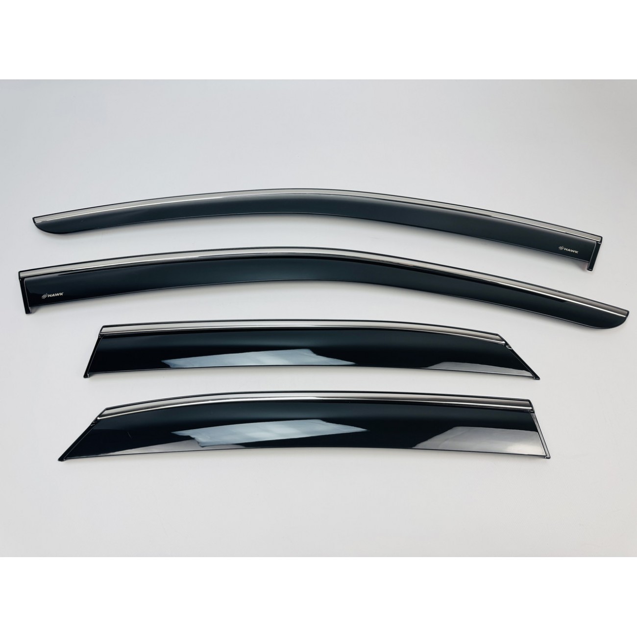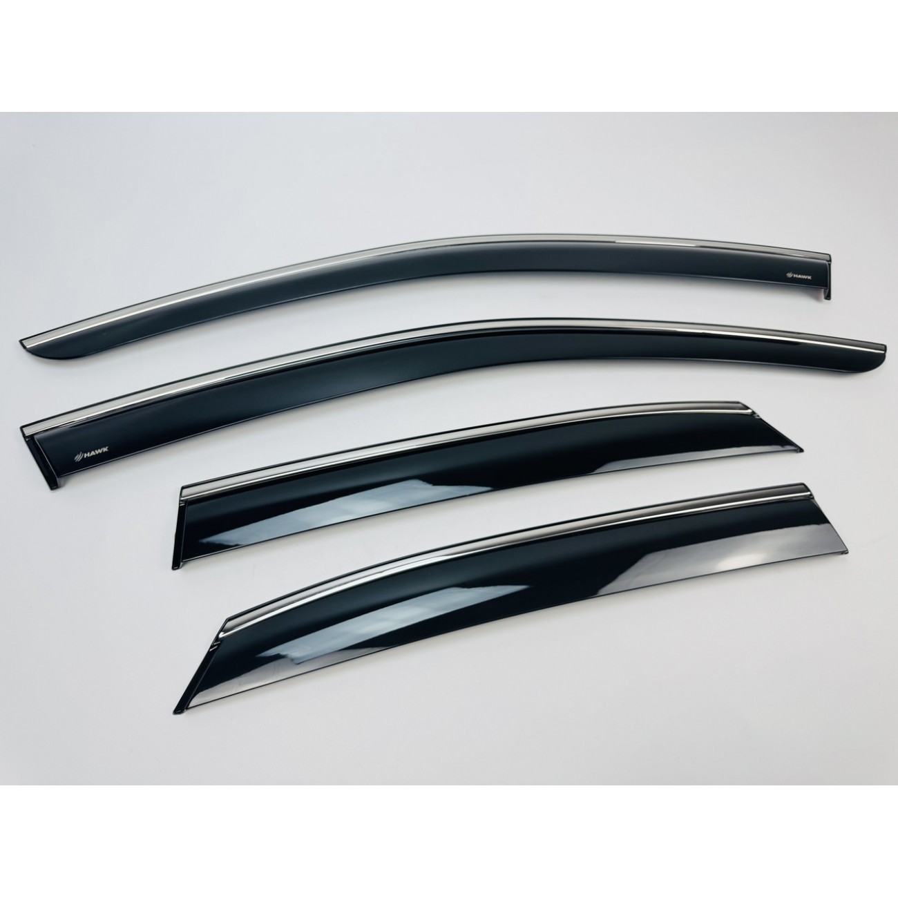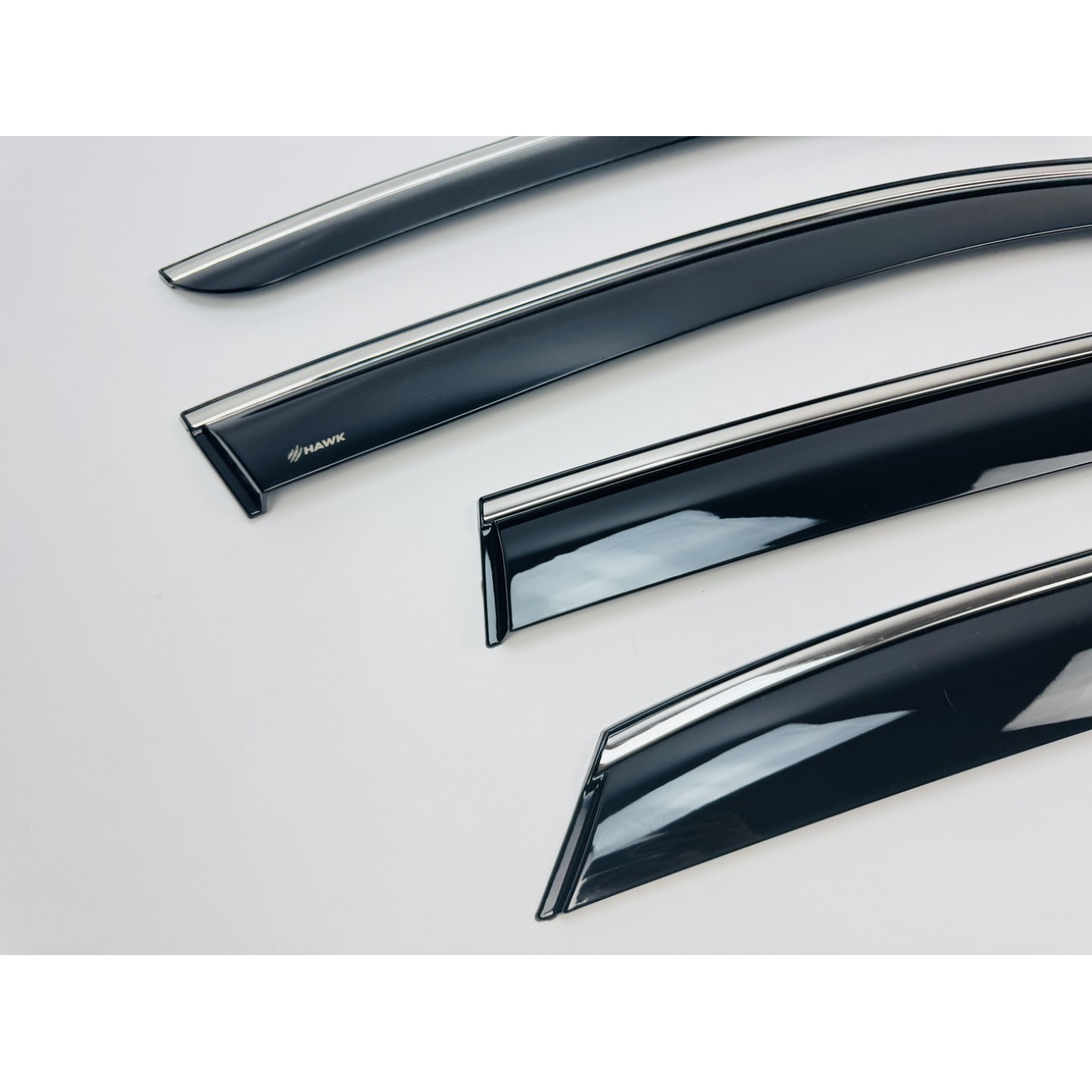 Дефлектори вікон HAWK — це ідеальне поєднання практичності та сучасного дизайну. Вони не лише захищають салон від дощу, снігу та вітру, а й додають автомобілю виразного преміального вигляду завдяки стильній хромованій вставці.