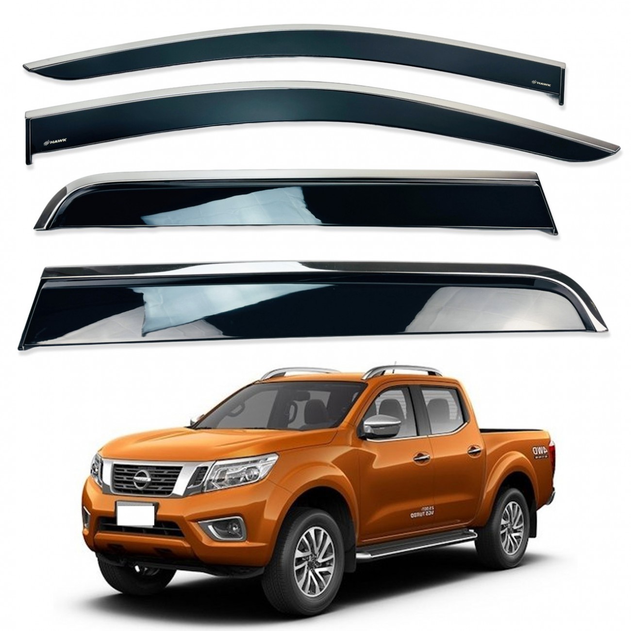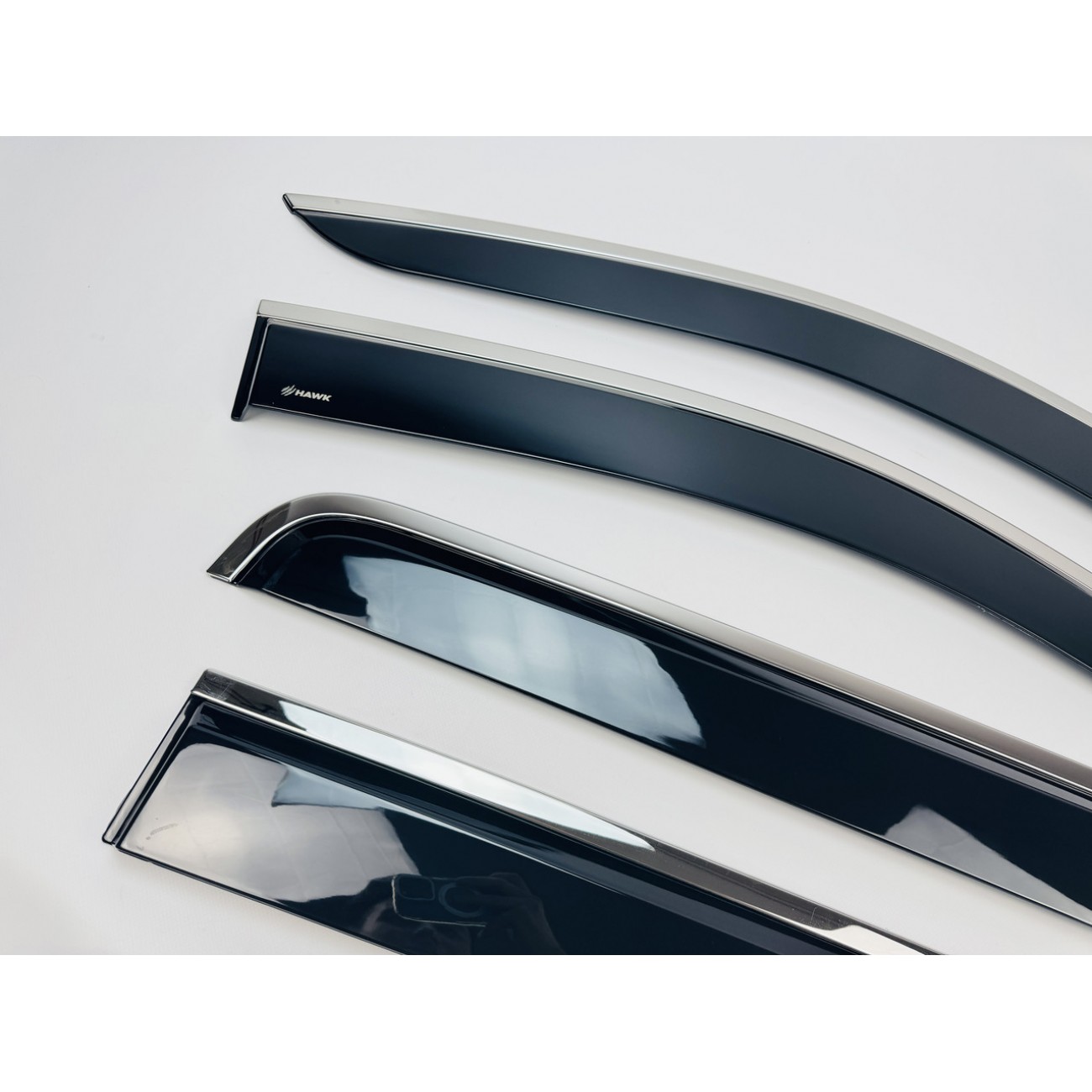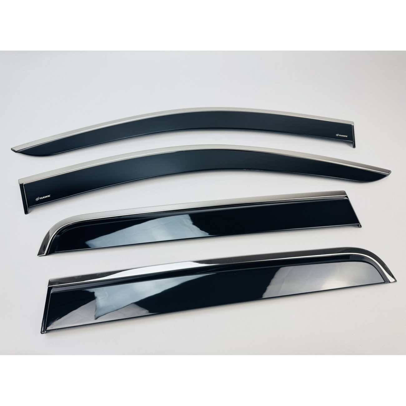 Дефлектори вікон HAWK — це ідеальне поєднання практичності та сучасного дизайну. Вони не лише захищають салон від дощу, снігу та вітру, а й додають автомобілю виразного преміального вигляду завдяки стильній хромованій вставці.