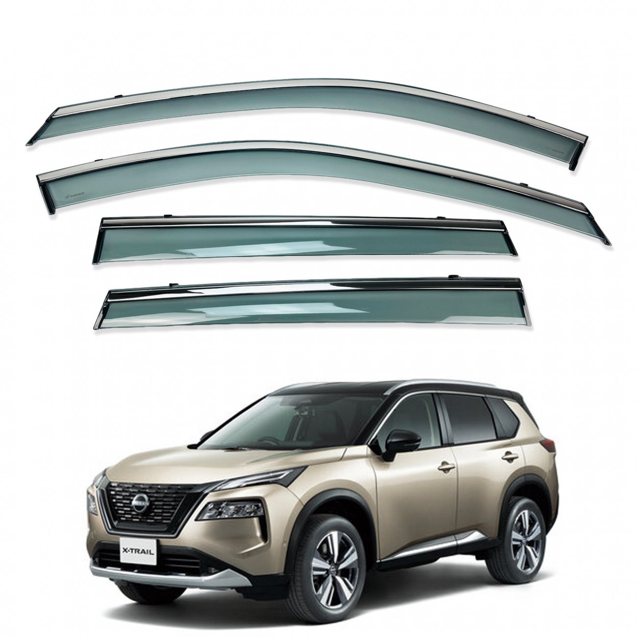 Дефлектори вікон (вітровики) для Nissan X-TRAIL / ROGUE T33 2021+ 6ШТ з нерж.хром полоскою (HAWK)