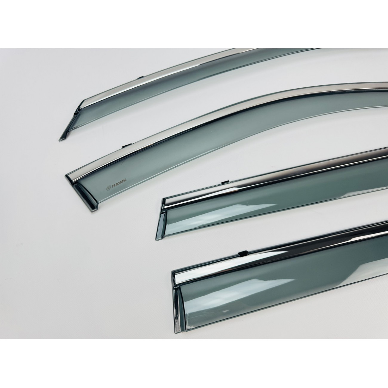 Дефлектори вікон HAWK — це ідеальне поєднання практичності та сучасного дизайну. Вони не лише захищають салон від дощу, снігу та вітру, а й додають автомобілю виразного преміального вигляду завдяки стильній хромованій вставці.
