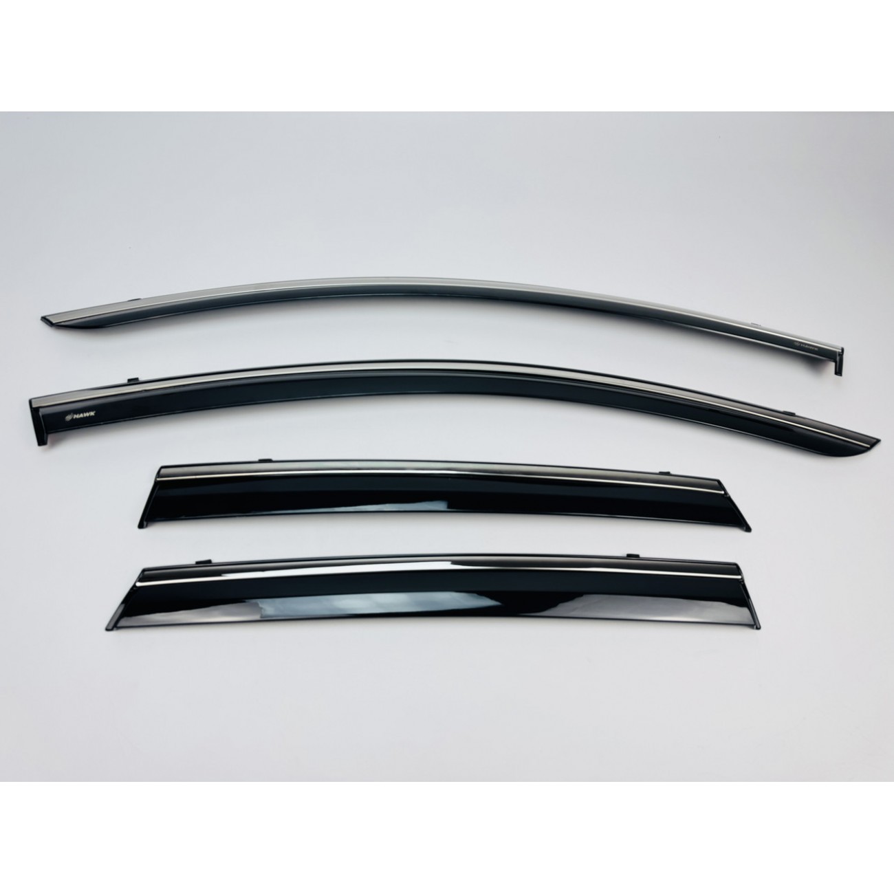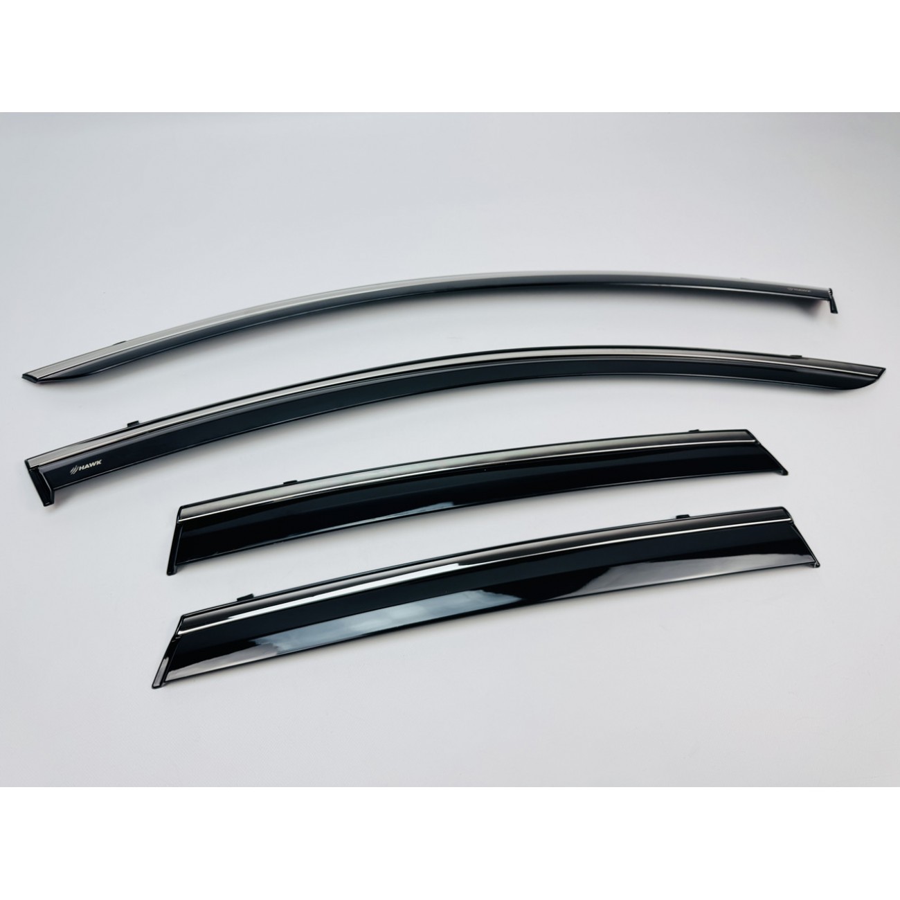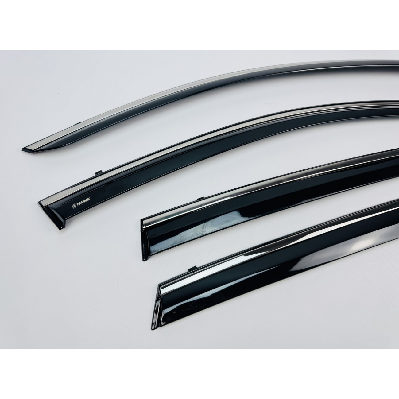 Дефлектори вікон HAWK — це ідеальне поєднання практичності та сучасного дизайну. Вони не лише захищають салон від дощу, снігу та вітру, а й додають автомобілю виразного преміального вигляду завдяки стильній хромованій вставці.