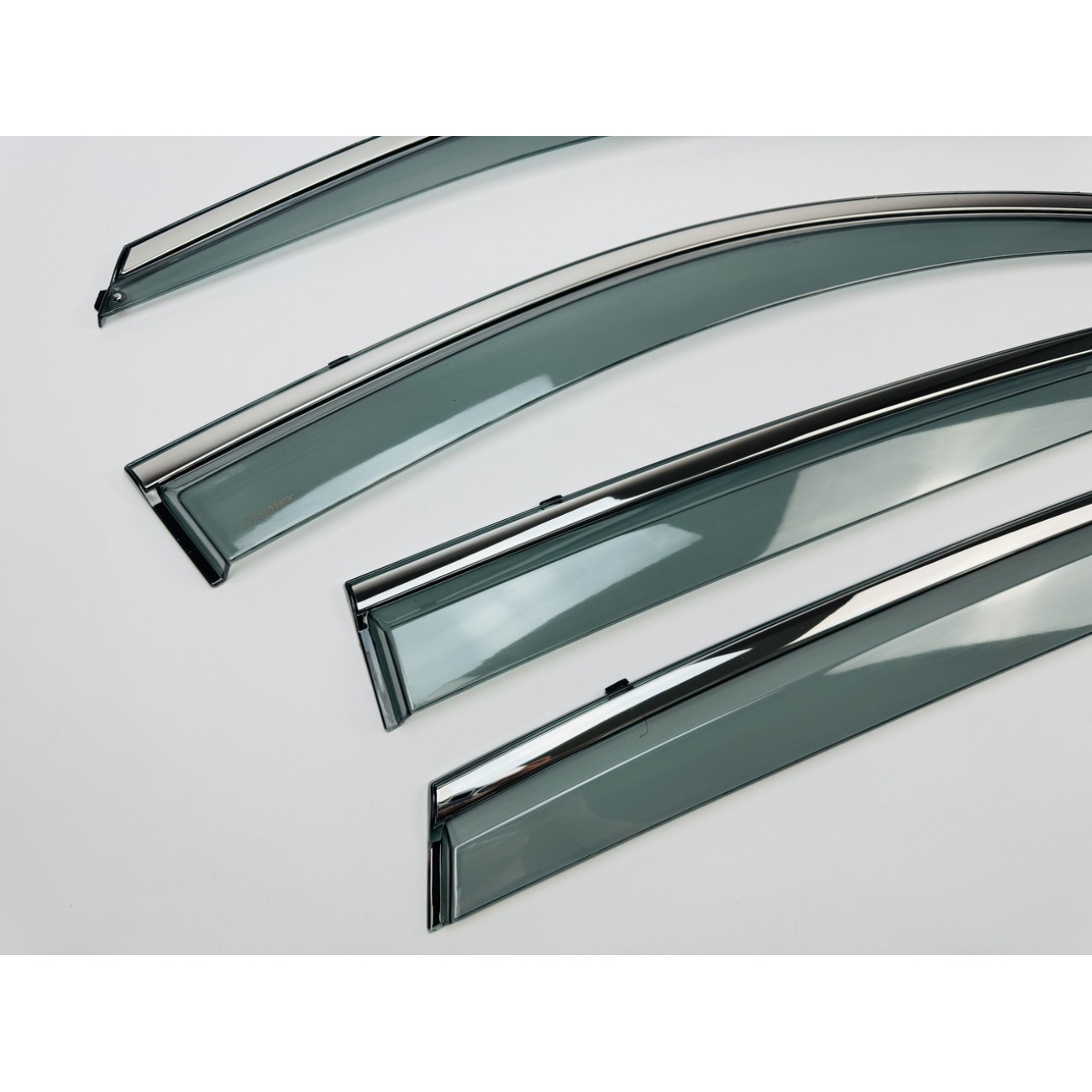 Дефлектори вікон HAWK — це ідеальне поєднання практичності та сучасного дизайну. Вони не лише захищають салон від дощу, снігу та вітру, а й додають автомобілю виразного преміального вигляду завдяки стильній хромованій вставці.