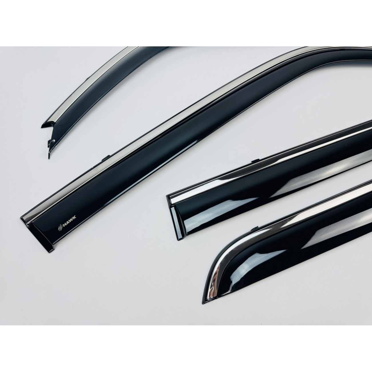 Дефлектори вікон HAWK — це ідеальне поєднання практичності та сучасного дизайну. Вони не лише захищають салон від дощу, снігу та вітру, а й додають автомобілю виразного преміального вигляду завдяки стильній хромованій вставці.