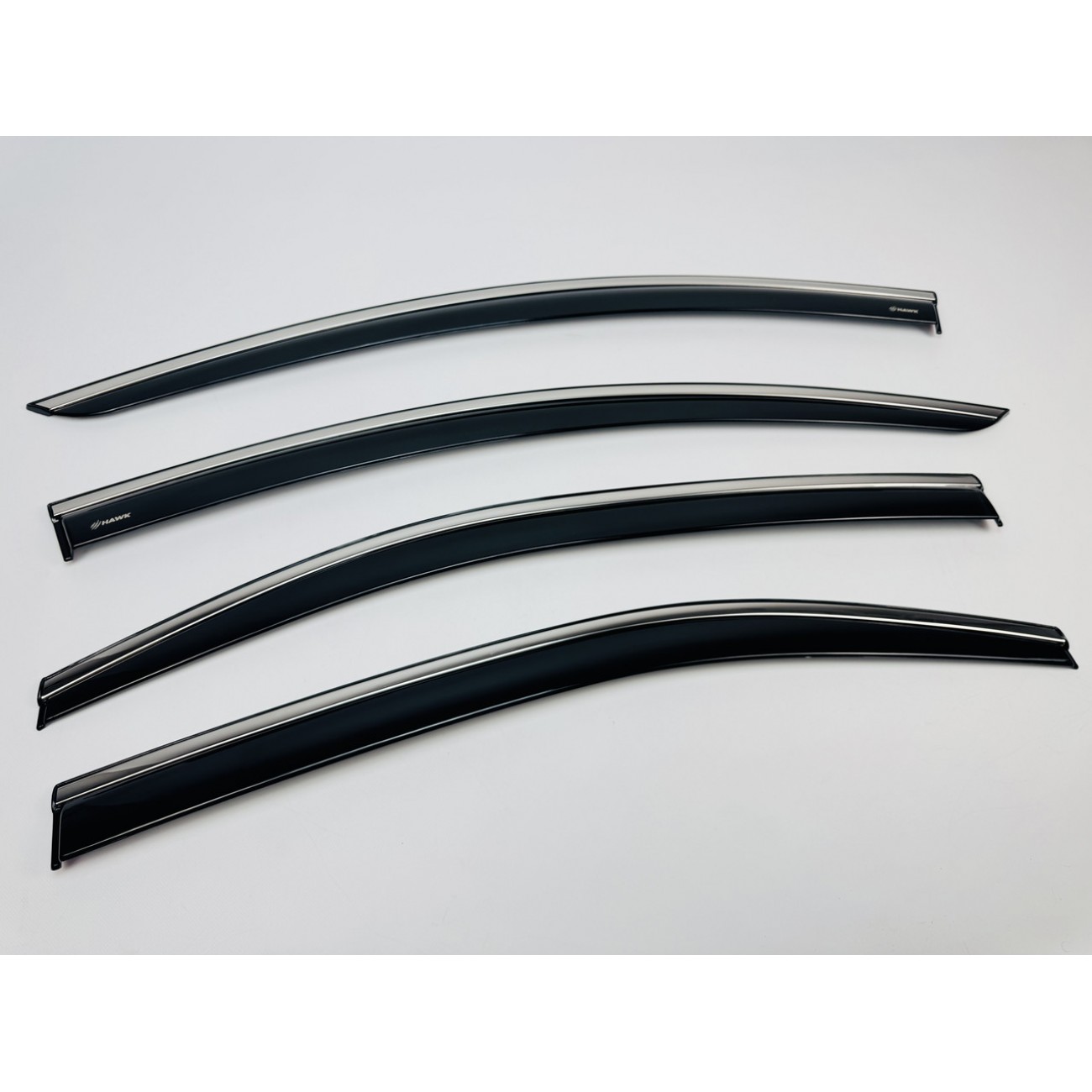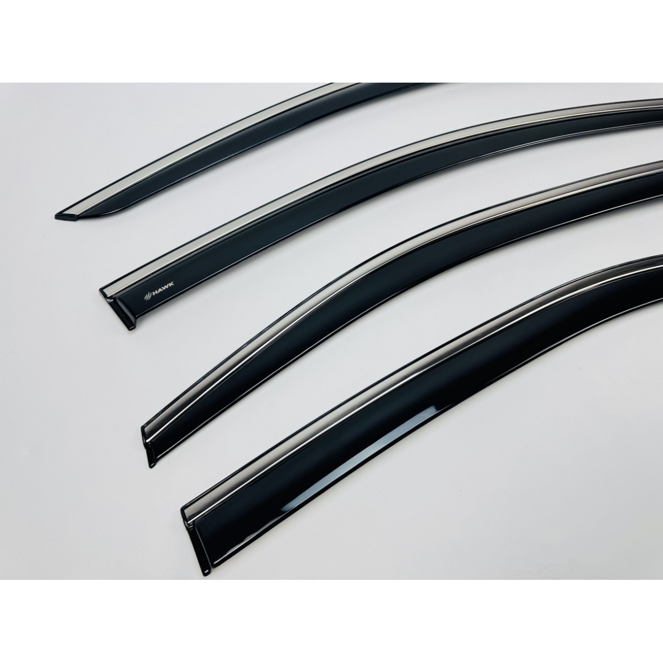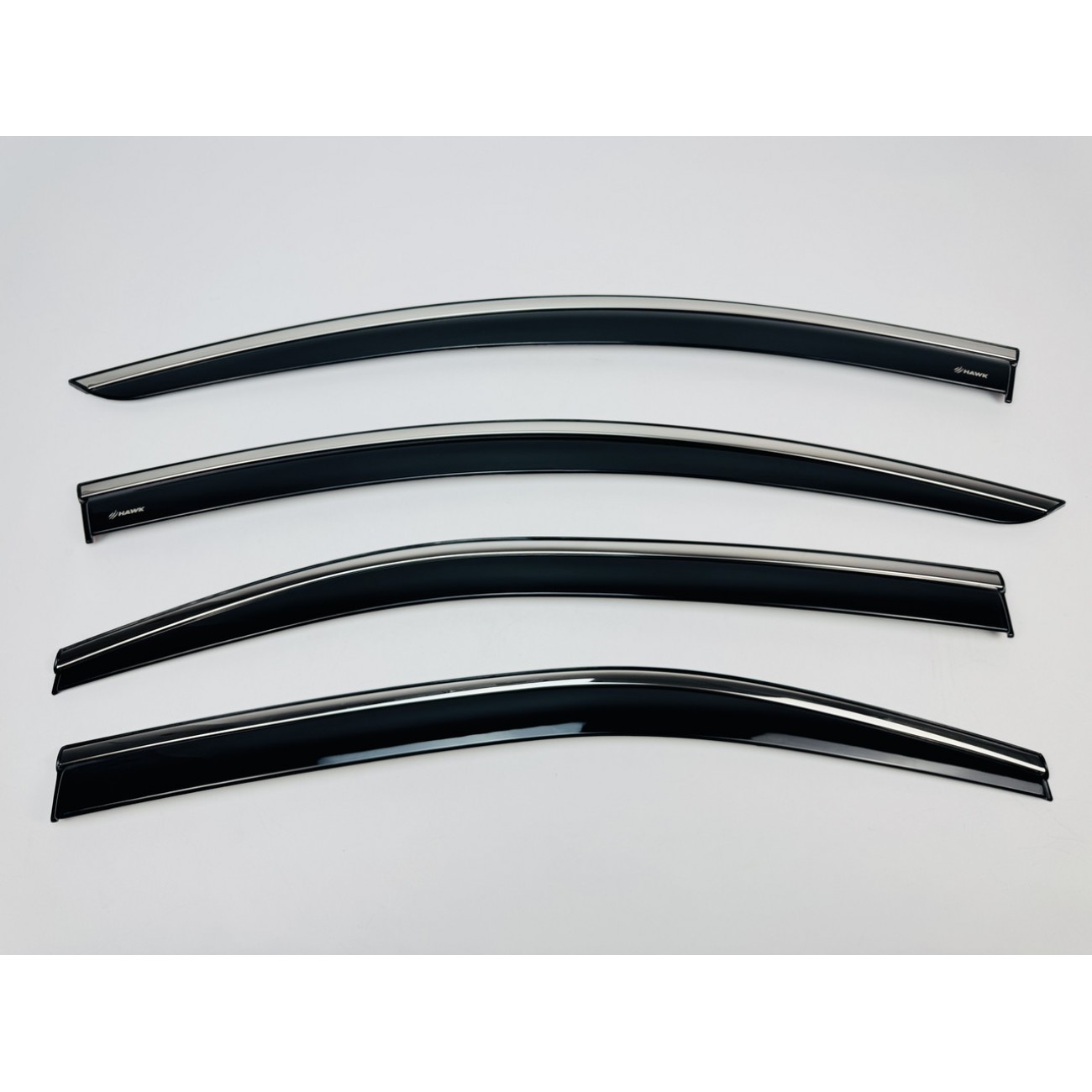 Дефлектори вікон HAWK — це ідеальне поєднання практичності та сучасного дизайну. Вони не лише захищають салон від дощу, снігу та вітру, а й додають автомобілю виразного преміального вигляду завдяки стильній хромованій вставці.