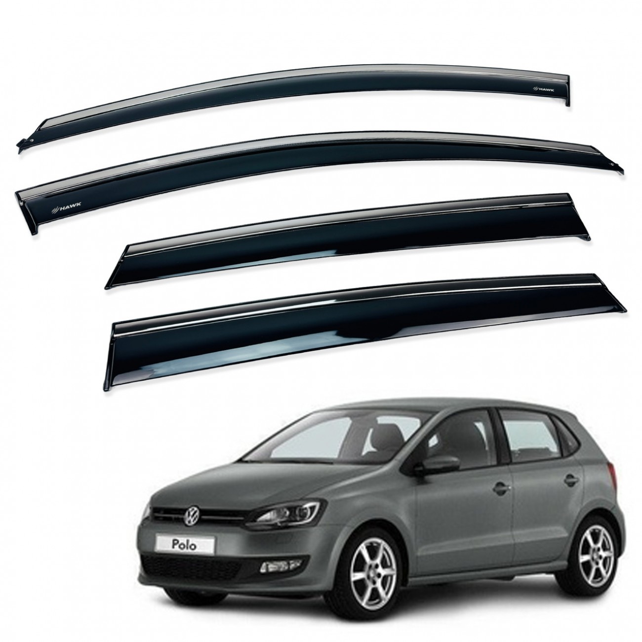Дефлектори вікон (вітровики) для Volkswagen POLO HATCHBACK HTB 2009-2017 c нерж. хром полоской (HAWK