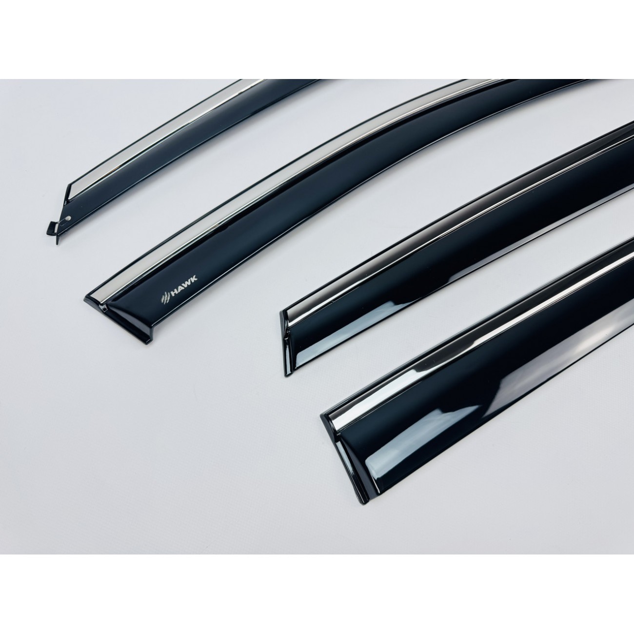 Дефлектори вікон HAWK — це ідеальне поєднання практичності та сучасного дизайну. Вони не лише захищають салон від дощу, снігу та вітру, а й додають автомобілю виразного преміального вигляду завдяки стильній хромованій вставці.